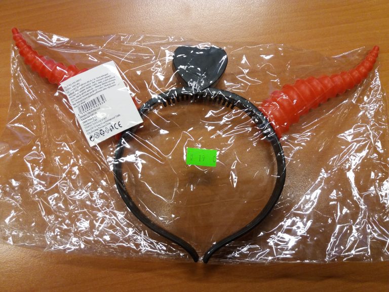 Název výrobku uvedený na obalu: Svítící rohy – Identifikační údaje výrobce: YIHENG TOYS FACTORY, Store 2287 D Area, YIWU – International Trade City Zhejiang Province, China Černá plastová čelenka na kterou jsou připevněny dva červené rohy. Ve středu čelenky je pouzdro ve tvaru srdíčka obsahující dvě knoflíkové baterie. Pouzdro je kryté špatně doléhajícím víčkem, není nikterak zajištěné proti otevření. Z tohoto pouzdra vedou tenké drátky ukončené LED diodami. Jaké riziko hrozí:  Po vyjmutí baterií z pouzdra může dítě baterie vložit do pusy a spolknout či vdechnout. Česká obchodní inspekce vydala opatření ve formě bezodkladného stažení výrobků z distribuce. Celá zpráva: 2018-03-01-RAPEX-celenka